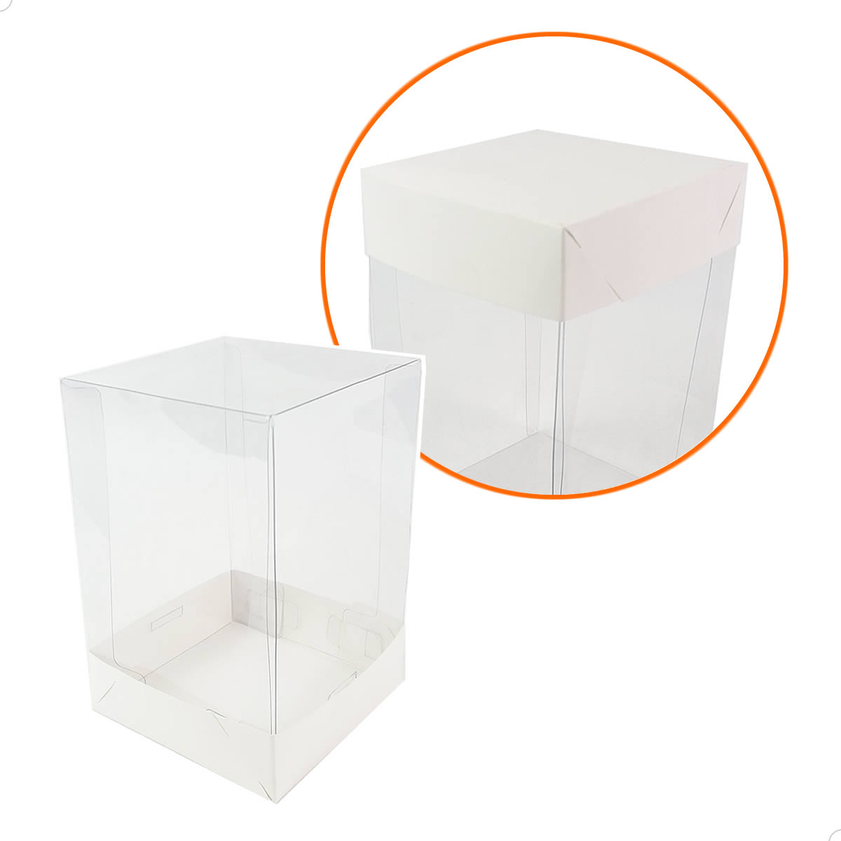 - Caixas em acetato transparente com tampa e fundo