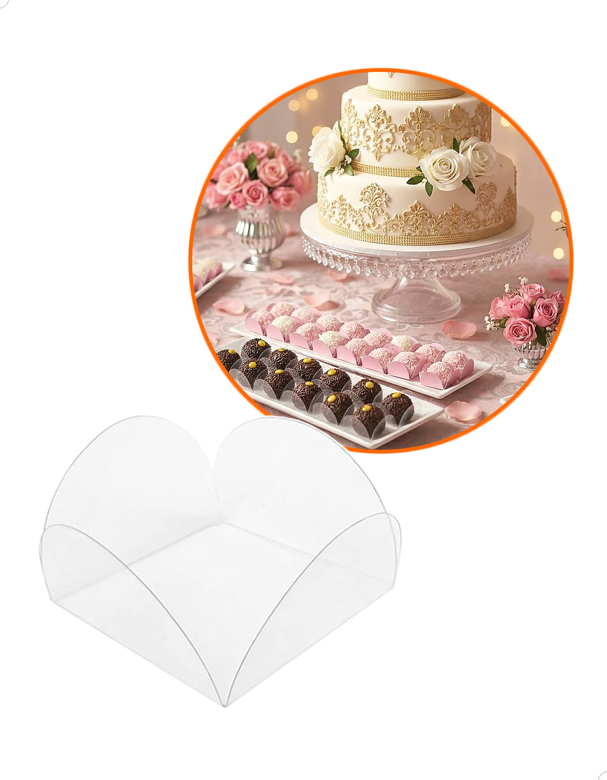 Muitas vezes, embalagens coloridas ou de papel acabam "escondendo" o produto ou brigando com a decoração da festa. A escolha pela transparência é estratégica: ela se adapta a qualquer tema, do rústico ao sofisticado, agindo como um suporte invisível que eleva o nível da mesa. Indicação usar um tapetinho rendado entre docinho e forminha, protege e dá luxo e requinte as suas doçuras.