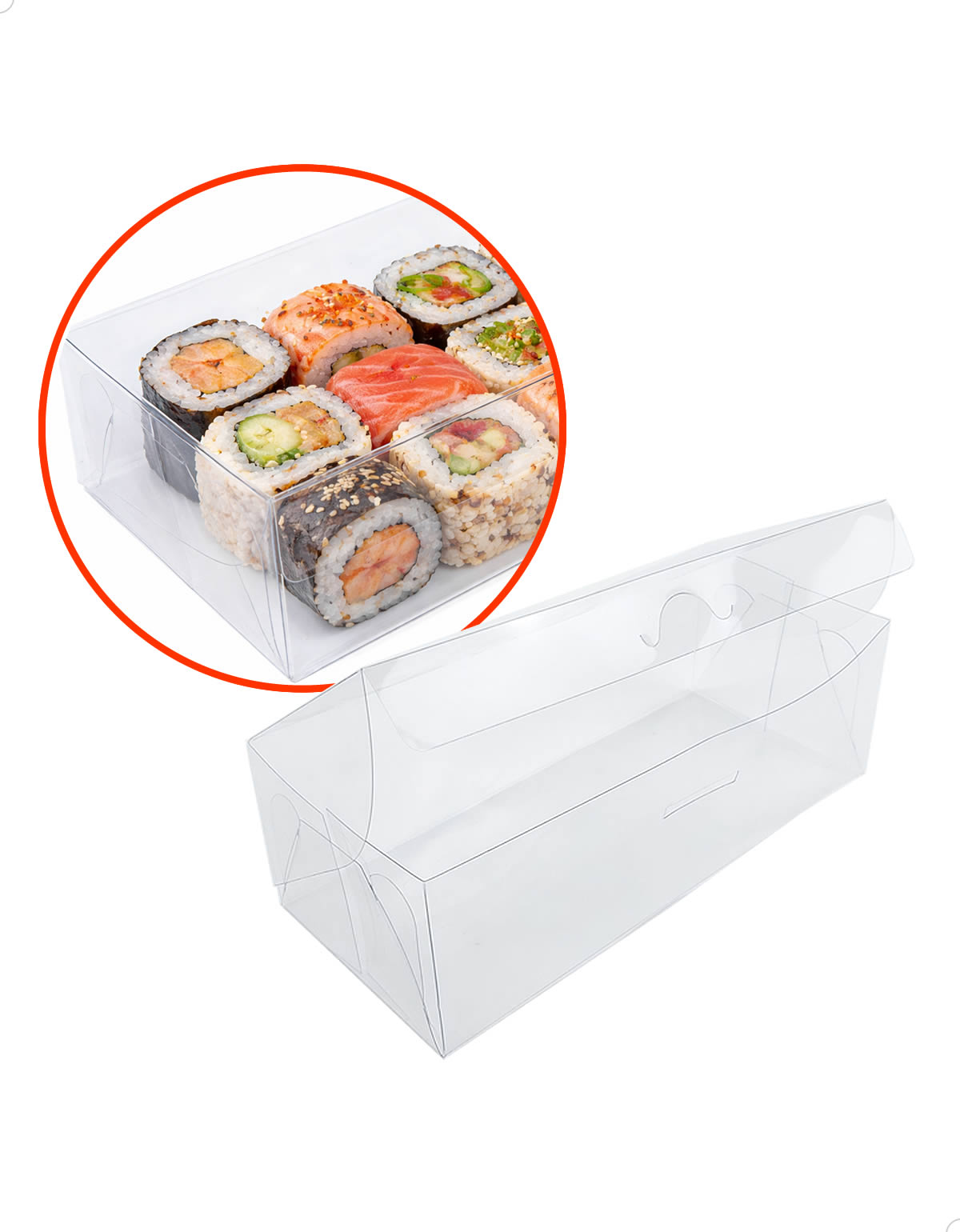 - Caixas em acetato transparente com tampa com sistema de abre e fecha