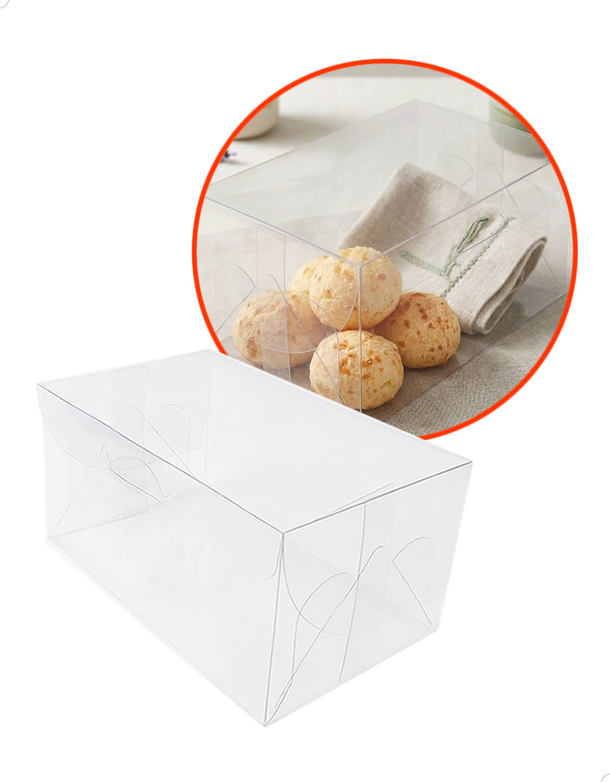 - Caixas em acetato transparente com tampa com sistema de abre e fecha