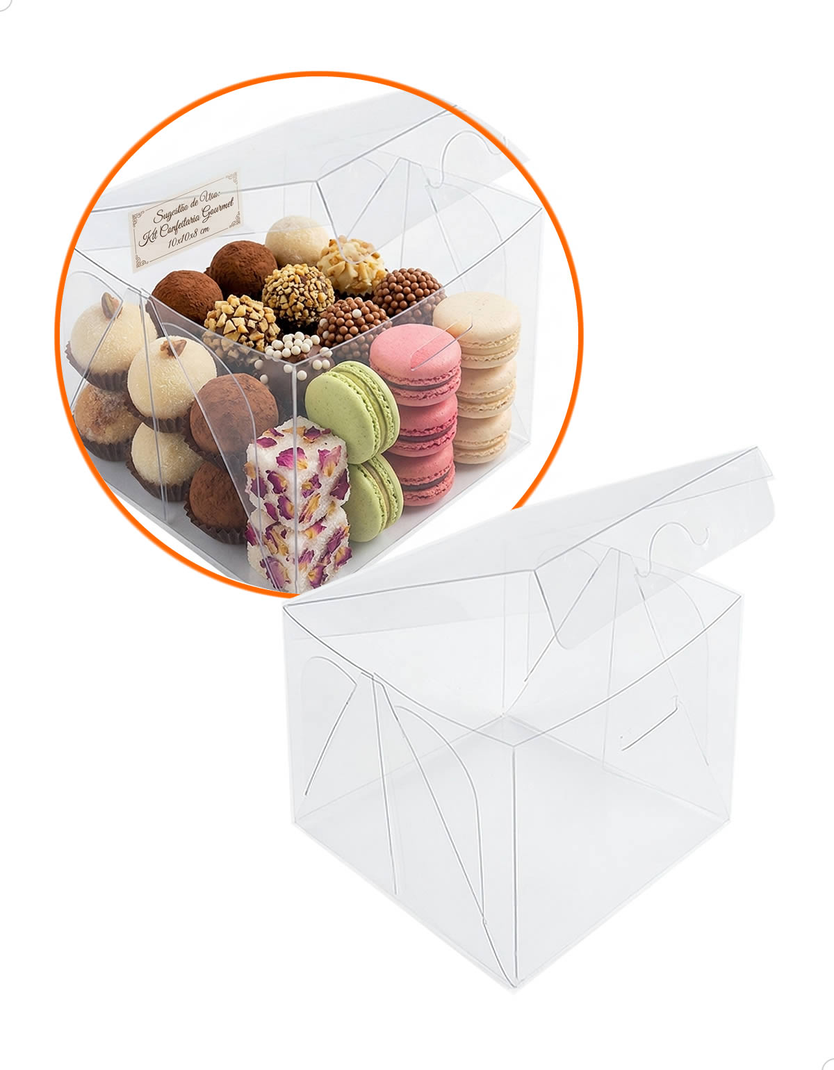 Caixa de Acetato PX-4 (10x10x8 cm) - Acetplace Embalagens: Embalagem transparente e resistente, ideal para doces, lembrancinhas, artesanato e pequenos objetos. Montagem fácil e prática, sem necessidade de cola. Destaque seus produtos com a Caixa de Acetato PX-4 da Acetplace Embalagens.
