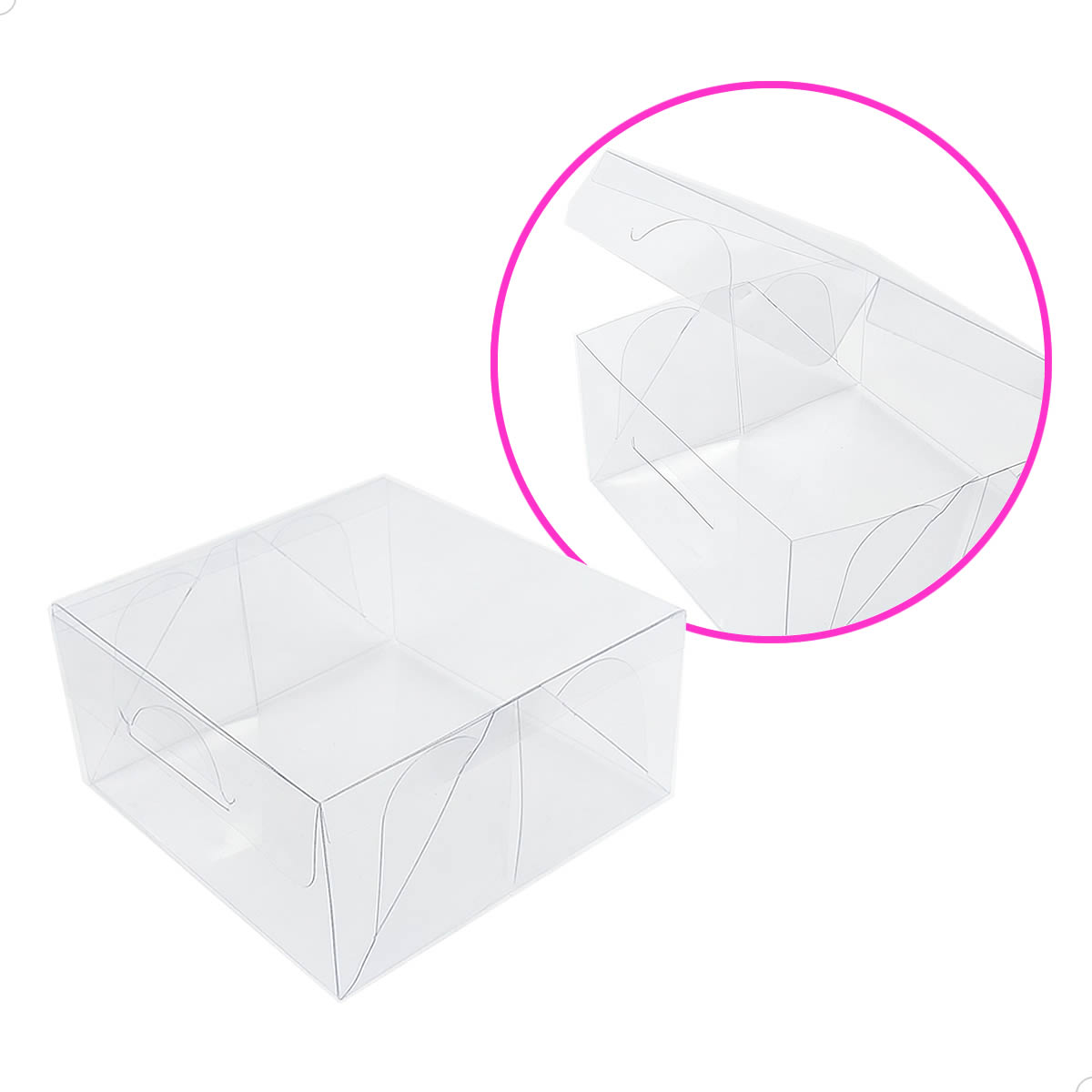 - Caixas em acetato transparente com tampa com sistema de abre e fecha