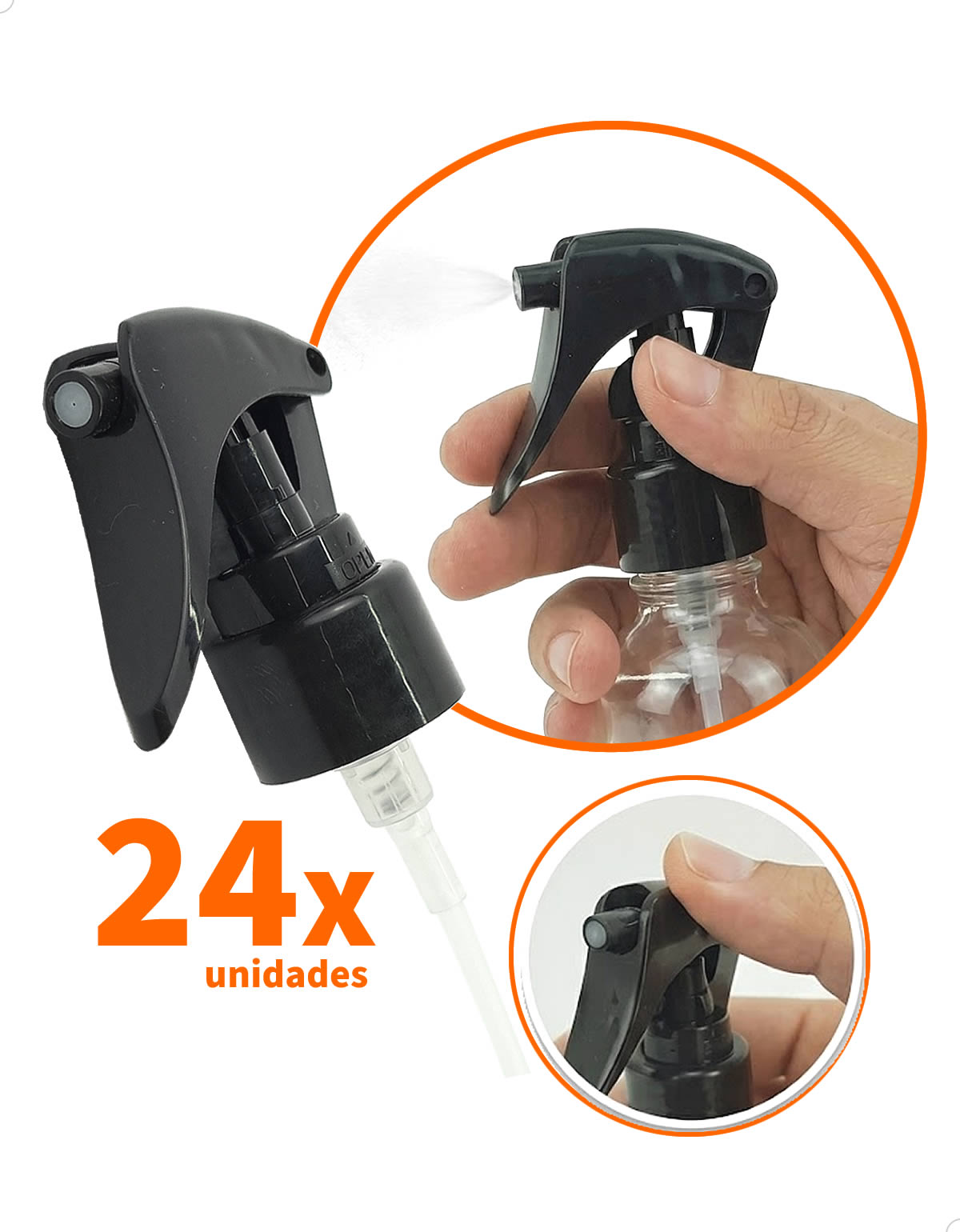 Válvula Mini Gatilho para Garrafinha 24mm, Mini Gatilho para Frasco com rosca 24mm, Borrifador para Frascos Multiuso, Mini Valvula Pulverizadora. Válvula Mini Gatilho Tigger, Mini Valvula Pulverizadora e a Jato. A válvula mini gatilho possui um mecanismo interno que permite a saída do produto ao se pressionar o gatilho. Ao soltar o mini  gatilho, a válvula se fecha automaticamente, evitando vazamentos. Esse sistema simples e intuitivo proporciona um controle preciso na dosagem do produto.
