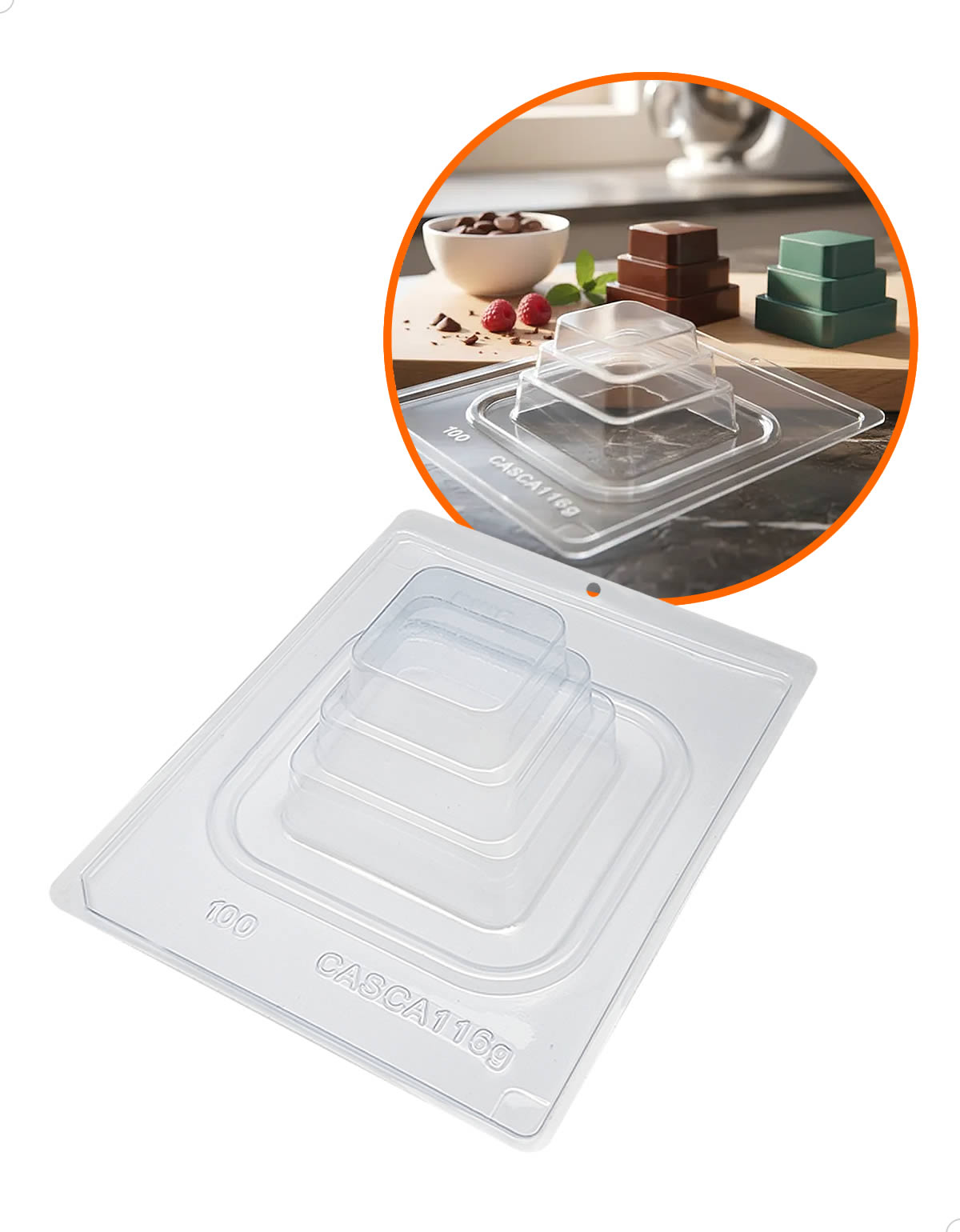 Como fazer bolo quadrado chocolate, ideias doce gigante, receitas confeitaria lucrativa, melhor forma chocolate recheado, tendência doces. Forma Para Chocolate Silicone Bolo Quadrado Gigante 116g BWB 100 Profissional 3 Partes Especial. A Forma BWB 100 é a solução definitiva para confeiteiros que buscam criar o famoso Bolo Quadrado Gigante de Chocolate. Composta por um sistema especial de 3 partes (duas camadas de acetato e uma de silicone), ela garante uma casquinha uniforme, brilho intenso e desmolde perfeito sem esforço.